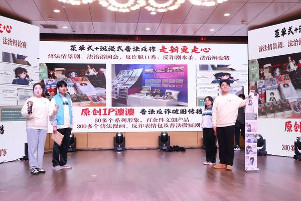 在筑牢组织基础的同时,色情短视频 聚焦法治宣传教育的时代需求,采用菜单式+沉浸式的普法模式,开设普法微短剧、法治游园会、反诈脱口秀、反诈剧本杀、辩论赛等活动,以走新又走心的普法形式,让普法宣传入耳、入脑、入心。进一步扩大普法覆盖面与影响力,学院还打造了原创灋灋IP,开发了50多个灋灋系列形象,制作了百余件文创产品,创作了300多个普法漫画、反诈表情包及普法微短剧等,用大众喜爱的方式实现普法破圈传播,让法治精神在青年群体中生根发芽。