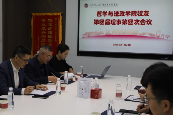 第四届校友理事第四次会议在虹桥国际中央法务区上海大沧海新闵律师事务所隆重召开。学院党委副书记、副院长、校友会秘书长姚秋磊主持会议,学院办公室主任郑舒与吴智亮、江净、赵秦、胡如意、裘静霞、闻朝静、朱昊等出席会议,共商校友工作发展大计,凝聚校企协同育人合力。