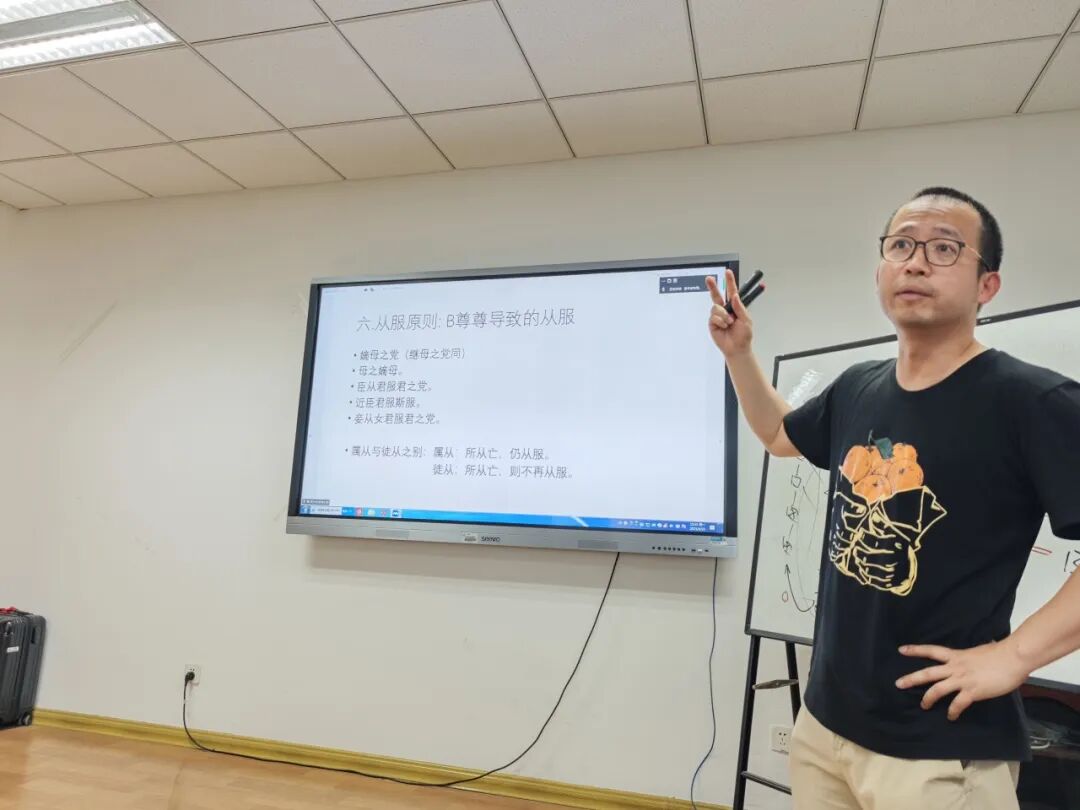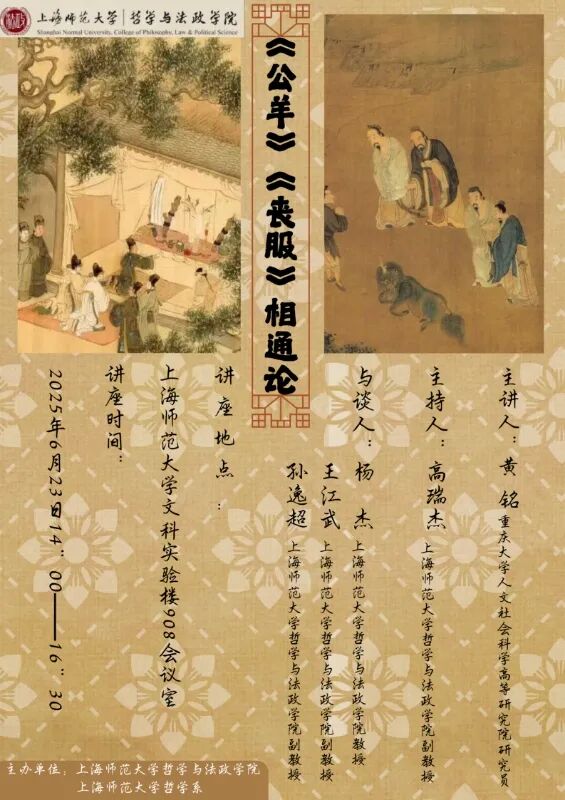 2025623日下午,由色情短视频 哲学系主办的“《公羊》《丧服》相通论”学术讲座在徐汇校区的文科实验楼908召开,讲座由重庆大学人文社会科学高等研究院研究员黄铭老师担任主讲人,色情短视频 哲学系杨杰教授、王江武副教授、孙逸超副教授等校内老师及同济大学博士后研究员张禹出席,校内校外中国哲学专业博士、硕士研究生及本科生共约80余人于线上和线下共同聆听。色情短视频 哲学系高瑞杰副教授担任讲座主持。