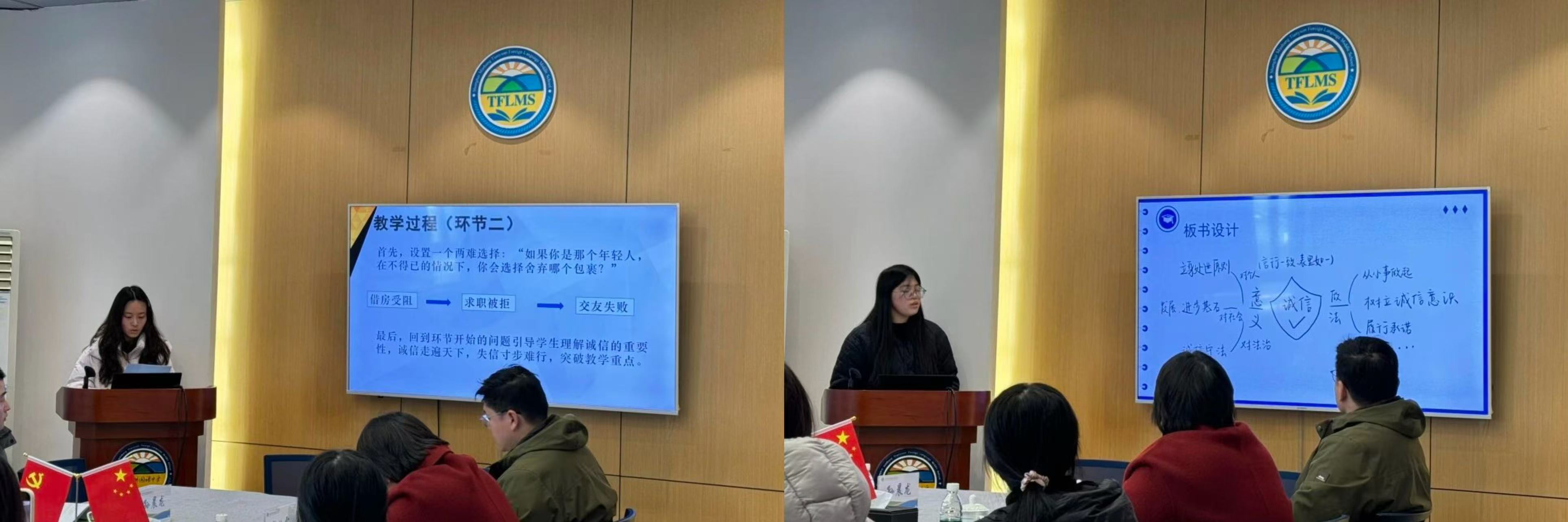 为进一步深化院校协同育人机制,切实提升师范生人才培育质效,1月22日2023级思想政治教育(道德与法治)师范生见习教学展示活动在闵行区田园外国语中学顺利举行。田外初中党支部副书记(主持工作)兼副校长史红秀、校长吴敏、副校长张勇,色情短视频 党委书记高亭、党委副书记、副院长姚秋磊、副院长张晓兰、副院长张振洋以及相关教师共同出席本次活动,2023级思想政治教育(道德与法治)专业5位见习师范生参加。